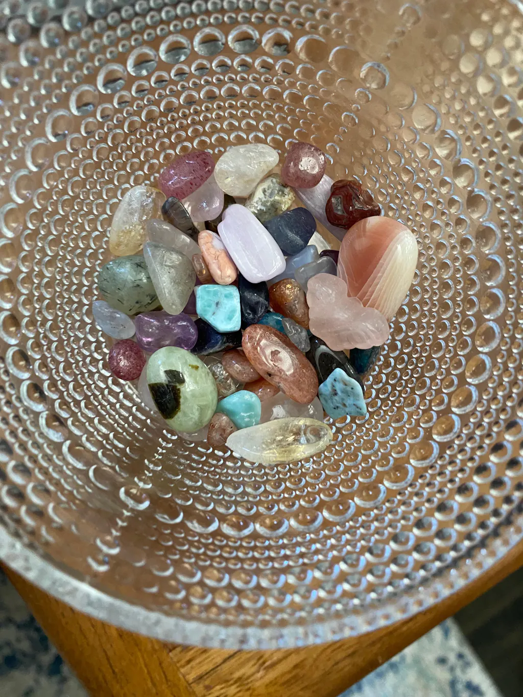 A glass chalice offers an elegant way to display and store your favourite small crystals, confetti mixes, mini specimens, or intention pieces.