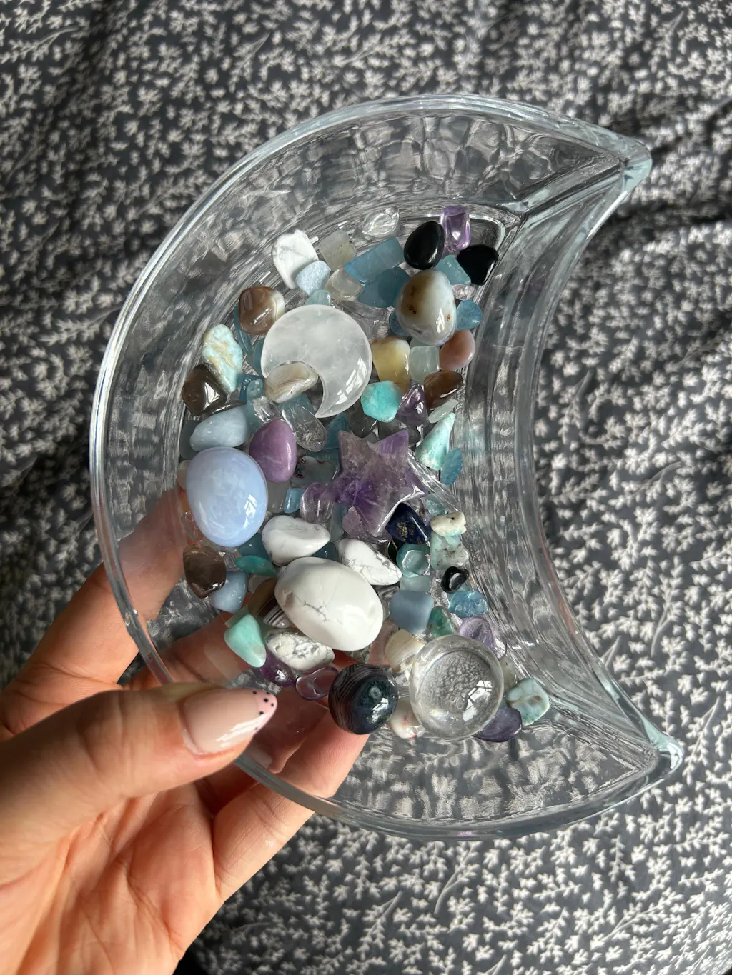 This bowl is perfect for holding crystal confetti, mini specimens, tumbled stones, jewelry, offerings, or small ritual tools. Many people use it for moon-charging crystals, organizing their altar, or creating intention groupings that align with the waxing and waning lunar phases.