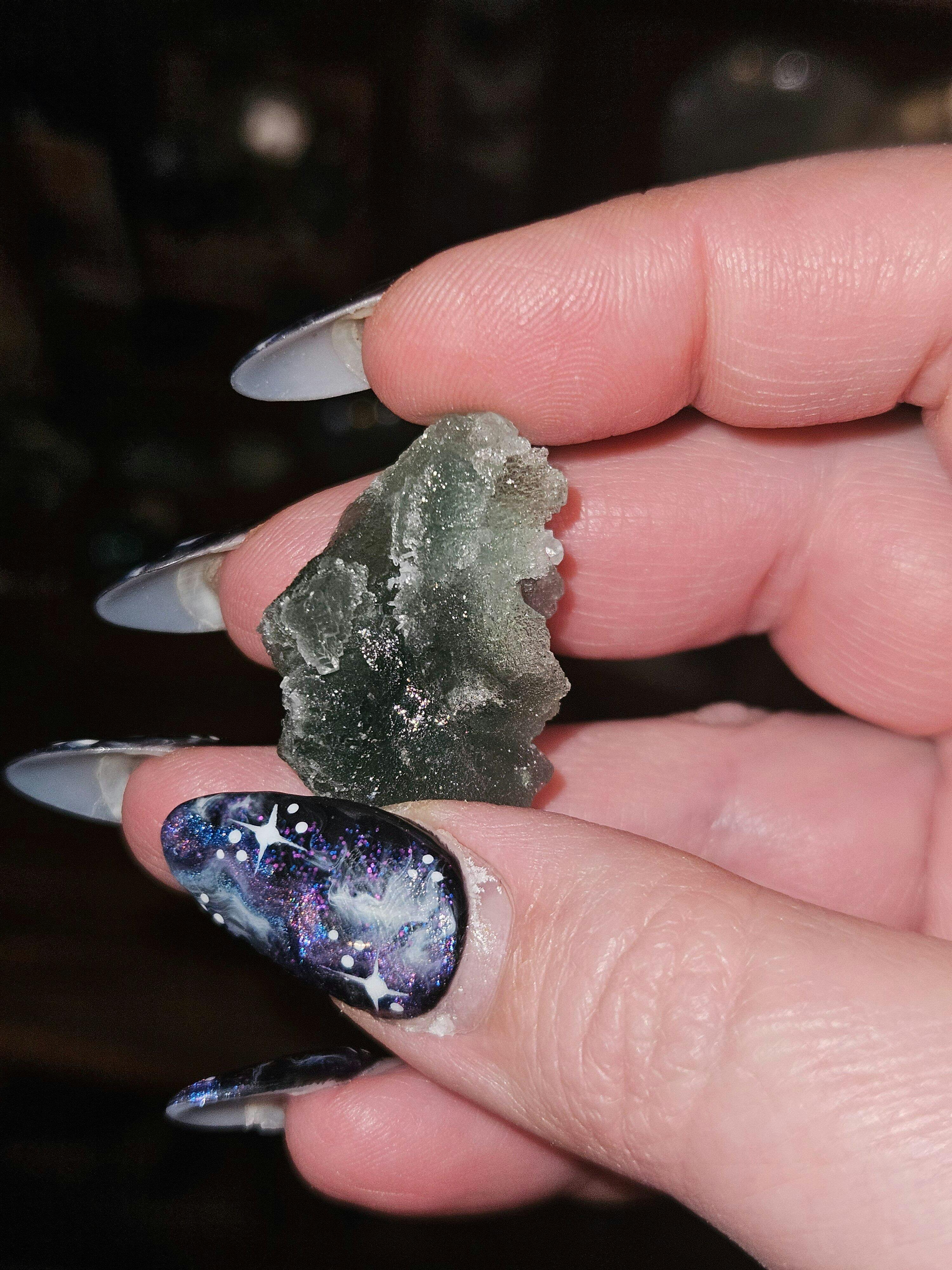 Deep green fluorite with calcite is a striking mineral pairing that combines the rich, saturated greens of fluorite with the soft, creamy contrast of natural calcite growths. The fluorite forms as vibrant cubic or layered structures, while the calcite often appears as delicate rhombs or smooth crystalline accents, making each specimen visually dynamic and unique. Metaphysically, deep green fluorite supports emotional balance, mental clarity, and energetic cleansing, while calcite amplifies positivity, renewal, and flow. Together, they create a powerful blend of grounding, focus, and gentle uplift, making this combination ideal for meditation, study spaces, or keeping your environment clear and aligned.