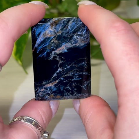 Namibian pietersite is a highly sought-after variety and comes from one of only two known sources worldwide, making genuine specimens rare and collectible. This variety is especially prized for its blue-grey body colour mixed with golden, brown, white, and occasionally rare red flashes that swirl together like a wild desert storm. Its chaotic, fibrous chatoyancy creates the dramatic effect that earned it the names Tempest Stone and Eagle's Eye. Metaphysically, Namibian pietersite stimulates willpower, intuition, and energetic transformation, helping you break stagnant patterns and gain clarity during times of change. Many people use it to strengthen determination, deepen spiritual insight, or carry it during personal transitions to stay focused, resilient, and aligned with their inner truth.