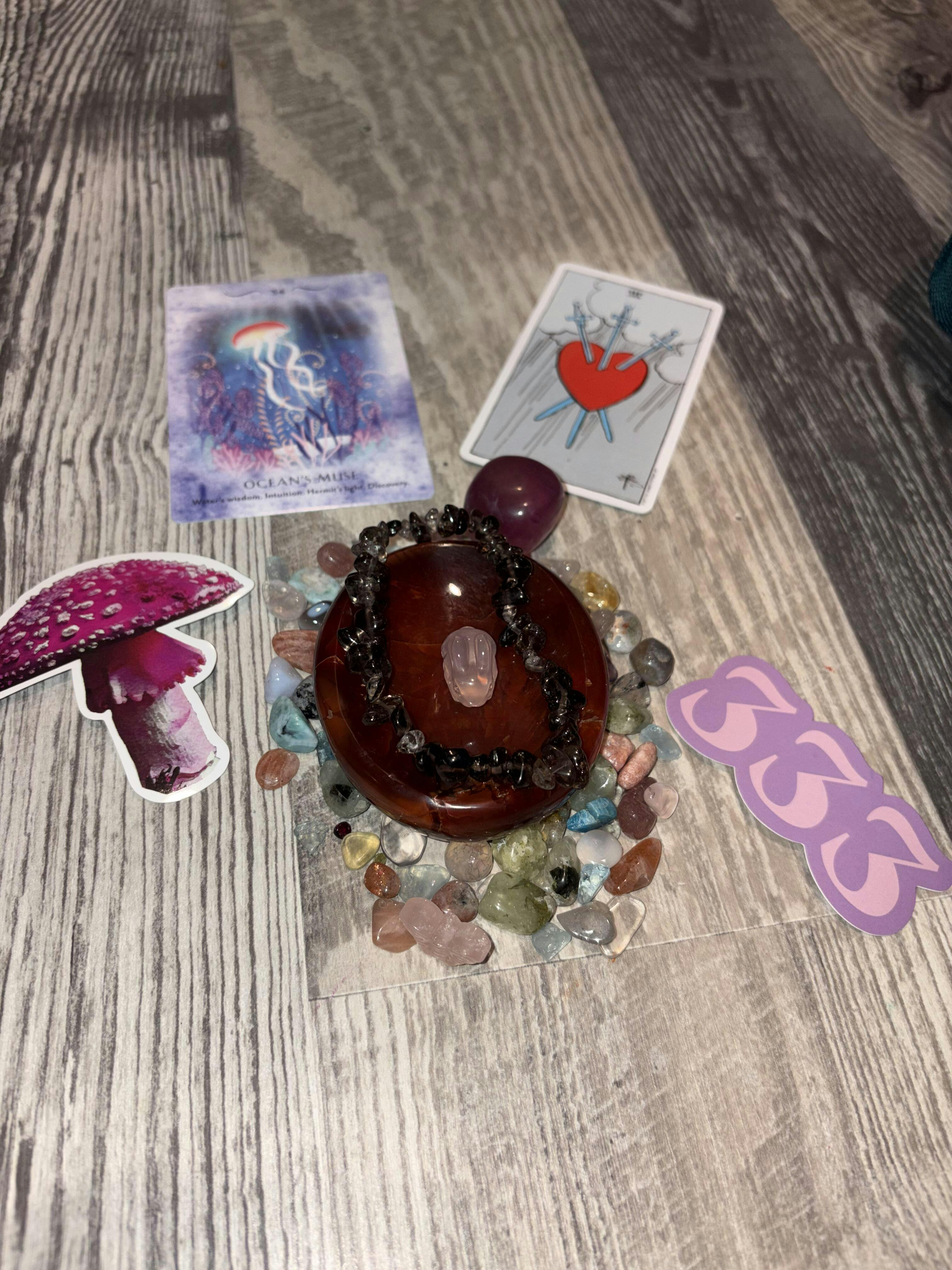 A bowl carving creates a small, intentional space to hold energy and organize your spiritual tools. You can use it to store tumbled stones, confetti, jewelry, intention notes, herbs, or offerings, or to charge crystals under moonlight. It also works beautifully on an altar to anchor intentions, keep daily-use pieces accessible, and bring a calm, curated look to your space.