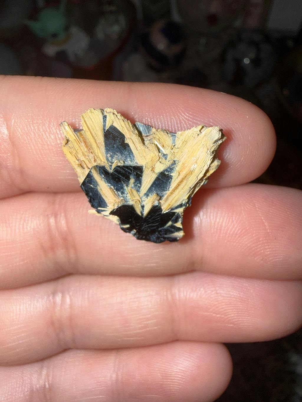 Golden rutile with naturally growing golden needle formations. Displays radiant, metallic strands formed as titanium dioxide crystals. Kenna values this material for its striking structure and energetic intensity, often linked to motivation, clarity, and forward momentum. Standalone rutile growth is less common than rutile in quartz, especially with clean, well-defined needles.