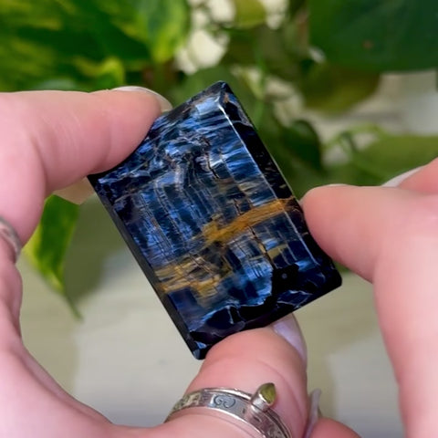 Namibian pietersite is a highly sought-after variety and comes from one of only two known sources worldwide, making genuine specimens rare and collectible. This variety is especially prized for its blue-grey body colour mixed with golden, brown, white, and occasionally rare red flashes that swirl together like a wild desert storm. Its chaotic, fibrous chatoyancy creates the dramatic effect that earned it the names Tempest Stone and Eagle's Eye. Metaphysically, Namibian pietersite stimulates willpower, intuition, and energetic transformation, helping you break stagnant patterns and gain clarity during times of change. Many people use it to strengthen determination, deepen spiritual insight, or carry it during personal transitions to stay focused, resilient, and aligned with their inner truth.