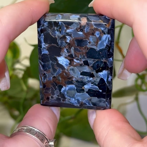 Namibian pietersite is a highly sought-after variety and comes from one of only two known sources worldwide, making genuine specimens rare and collectible. This variety is especially prized for its blue-grey body colour mixed with golden, brown, white, and occasionally rare red flashes that swirl together like a wild desert storm. Its chaotic, fibrous chatoyancy creates the dramatic effect that earned it the names Tempest Stone and Eagle's Eye. Metaphysically, Namibian pietersite stimulates willpower, intuition, and energetic transformation, helping you break stagnant patterns and gain clarity during times of change. Many people use it to strengthen determination, deepen spiritual insight, or carry it during personal transitions to stay focused, resilient, and aligned with their inner truth.
