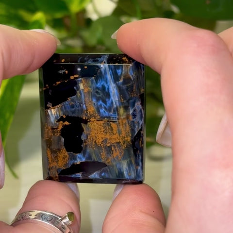 Namibian pietersite is a highly sought-after variety and comes from one of only two known sources worldwide, making genuine specimens rare and collectible. This variety is especially prized for its blue-grey body colour mixed with golden, brown, white, and occasionally rare red flashes that swirl together like a wild desert storm. Its chaotic, fibrous chatoyancy creates the dramatic effect that earned it the names Tempest Stone and Eagle's Eye. Metaphysically, Namibian pietersite stimulates willpower, intuition, and energetic transformation, helping you break stagnant patterns and gain clarity during times of change. Many people use it to strengthen determination, deepen spiritual insight, or carry it during personal transitions to stay focused, resilient, and aligned with their inner truth.
