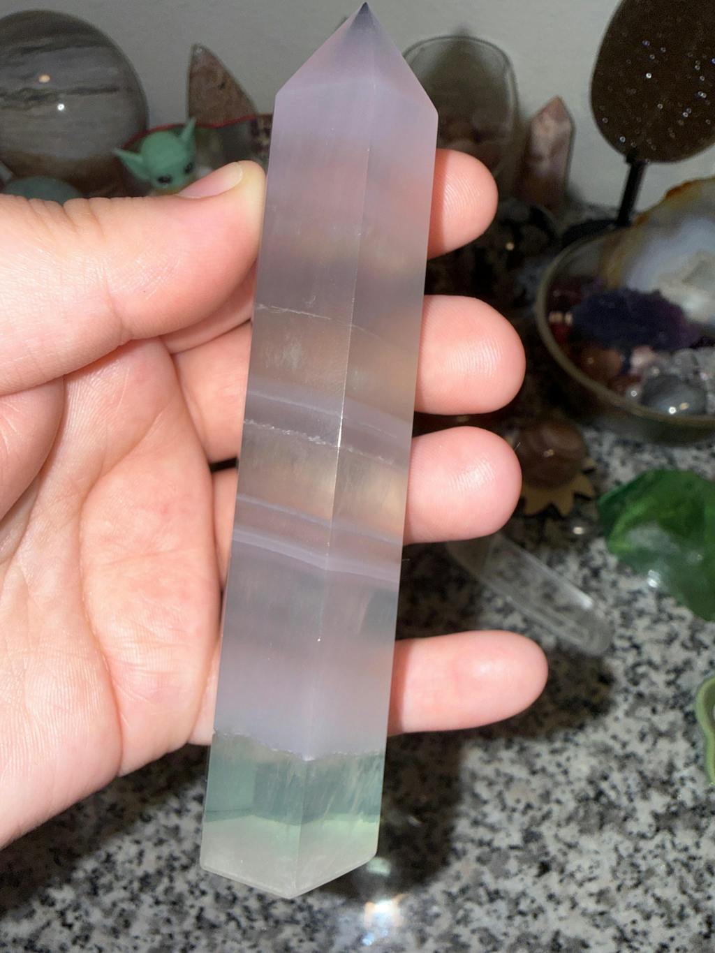 Yttrium fluorite with a soft lavender to lilac glow, coloured by trace yttrium and other rare earth elements. Kenna loves its dreamy colour, clean energy, and gentle clarity. Kenna uses this unique, lavender fluorite to support mental calm, intuitive focus, and a softer kind of spiritual protection, like a hush over racing thoughts. Many also use it for meditation, dreamwork, and energy cleansing.