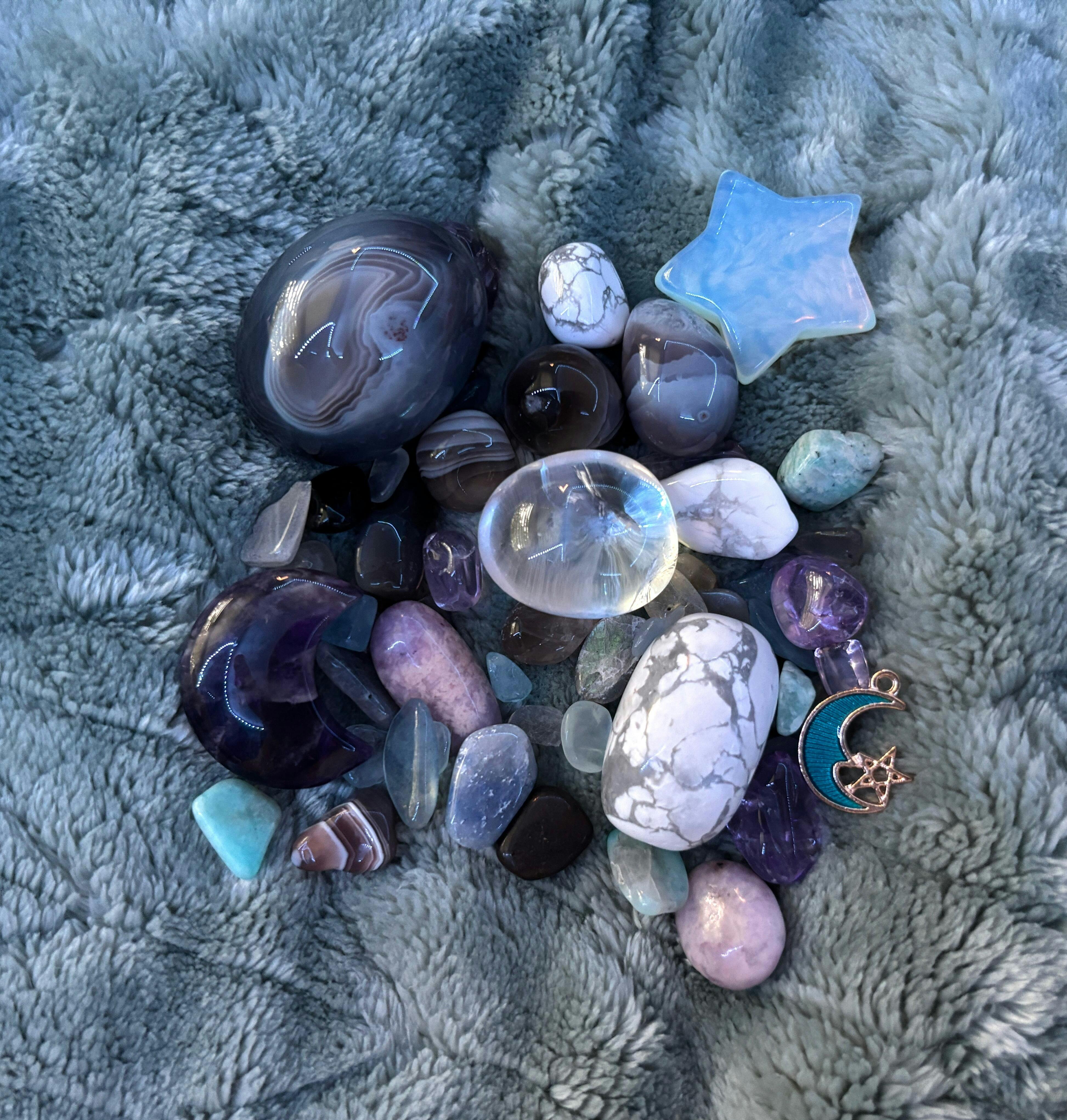 I only got a 1/4 scoop but I was still fortunate enough to get a couple bigger/statement crystals and even a moon charm! Even the smaller ones are so unique and pretty and I cannot wait to use them in my pagan practice ^^