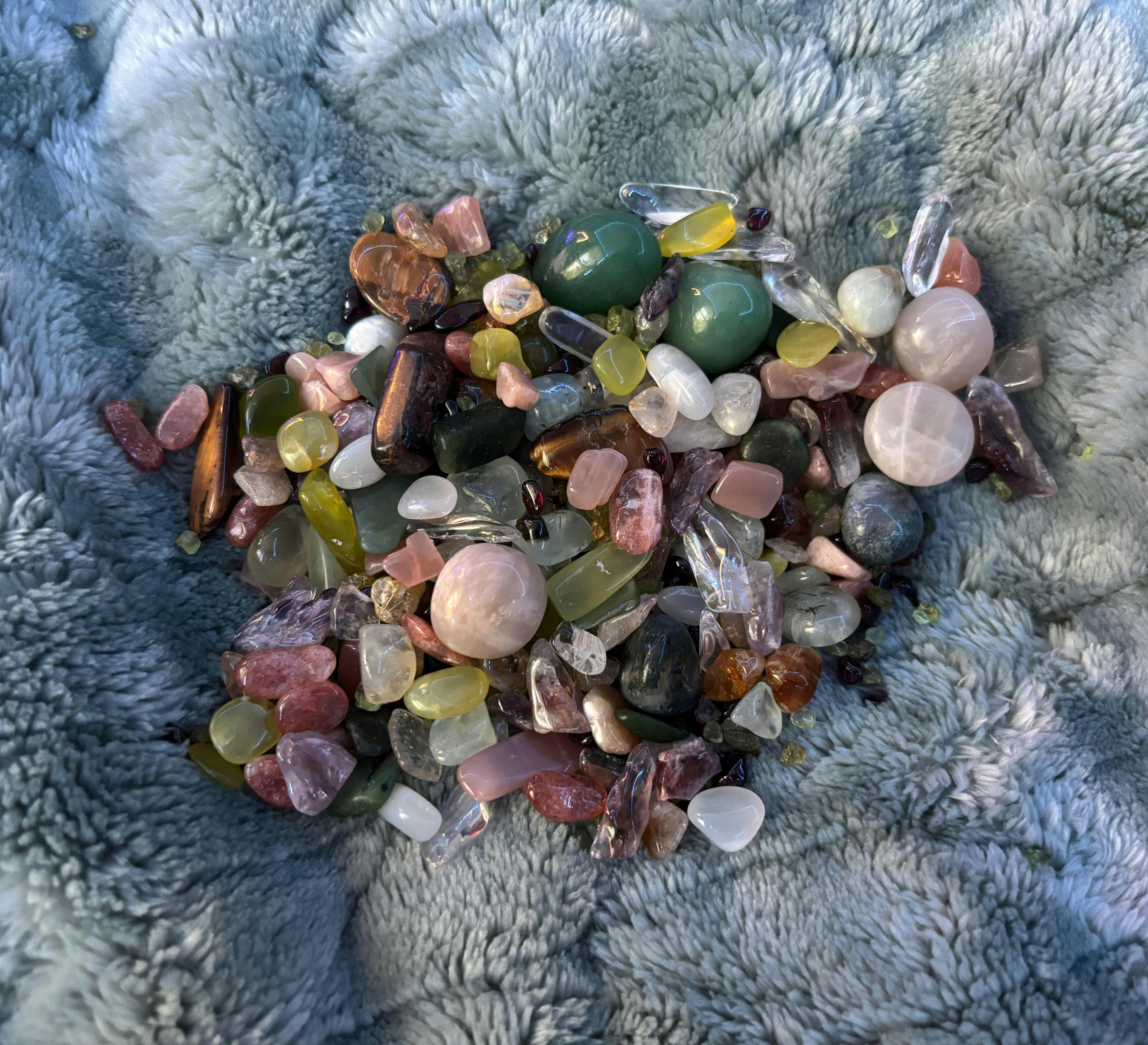 So obsessed!!! The colours are gorgeous and so is the quality. For my first order I’m so impressed and so glad I got a full cup scoop! The perfect mixture of larger tumbles/hearts and smaller crystals. I highly recommend as I’ve also been feeling more positive! Thank you Kenna <3