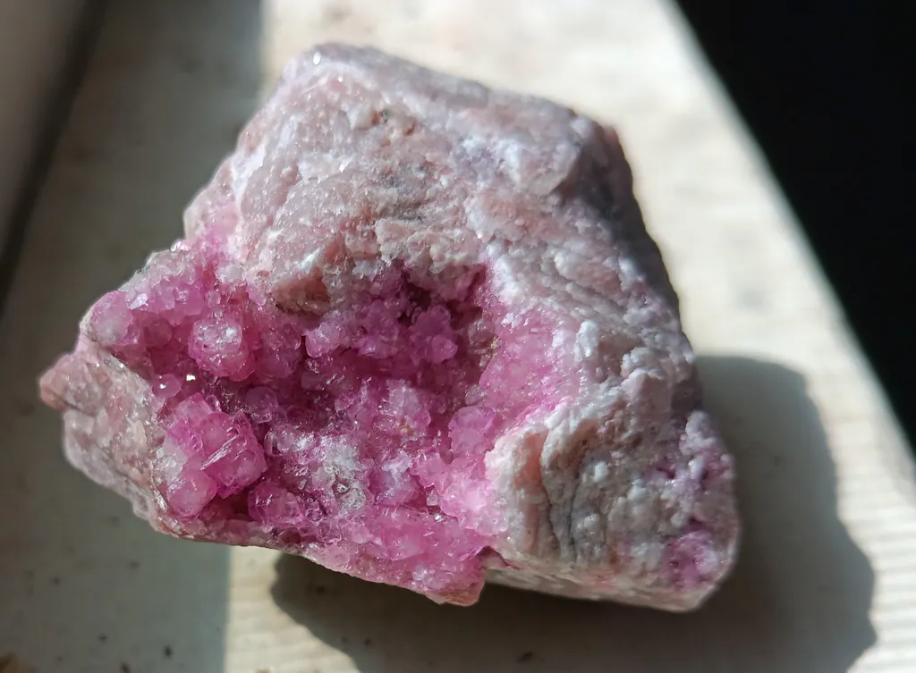 I bought this on a whim as I'm not usually a fan of raw crystals, but it is so gorgeous! Sparkles literally everywhere, the most gorgeous shade of pink inside. I can look at this specimen for hours it is so captivating. Absolutely worth it, it's my favorite recent purchase! 💖