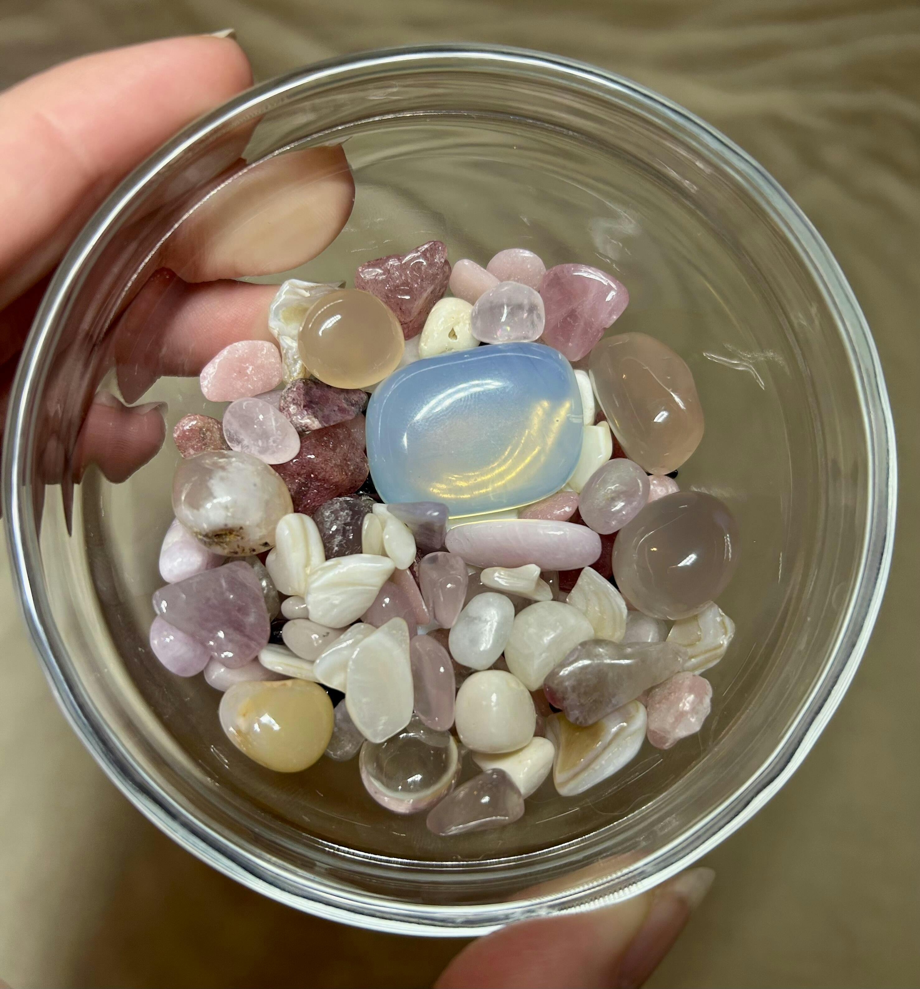 Kylie-Ann Humble since this was the valentine's restock, the free confetti was love confetti and it's gorgeous! plus the collectible butterfly is such a cute and custom touch, i love ittt💗 i also was gifted a larimar and a lepidolite chip bracelet, so i wanted to add a picture of those here too!!!